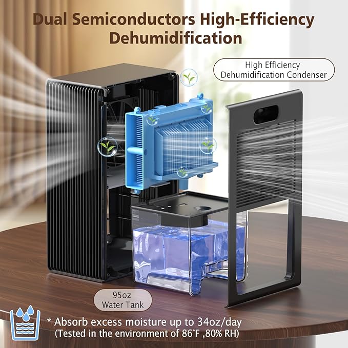 - Deshumidificador avanzado para el hogar: nuestro deshumidificador adopta tecnología de condensación de semiconductores con un funcionamiento silencioso. Elimina eficazmente la humedad del aire para garantizar una vida cómoda.