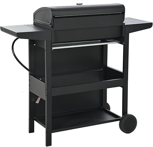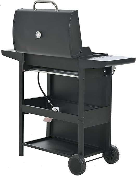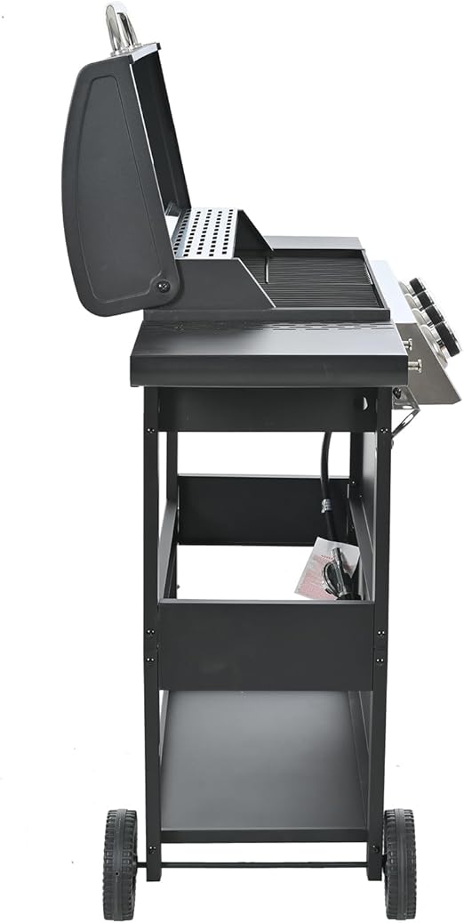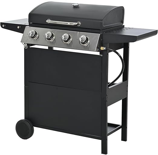 - Gas Grill, 4-Burner Propane Gas Grill With 2 Foldable Shelves, Freestanding Grill Cart with Wheels, Side Burner, Lid, Outdoor BBQ Grill for Outdoor Garden Backyard Cooking Barbecue