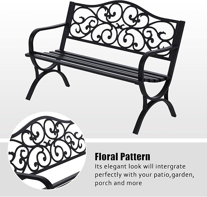 - Elegante patrón floral: fabricado con patrón floral y borde ondulado del respaldo, el aspecto simple pero elegante de este banco lo hace ideal para cualquier espacio al aire libre. Puedes sentarte en él para relajarte y disfrutar del tiempo libre en el jardín, patio, balcón y otras áreas