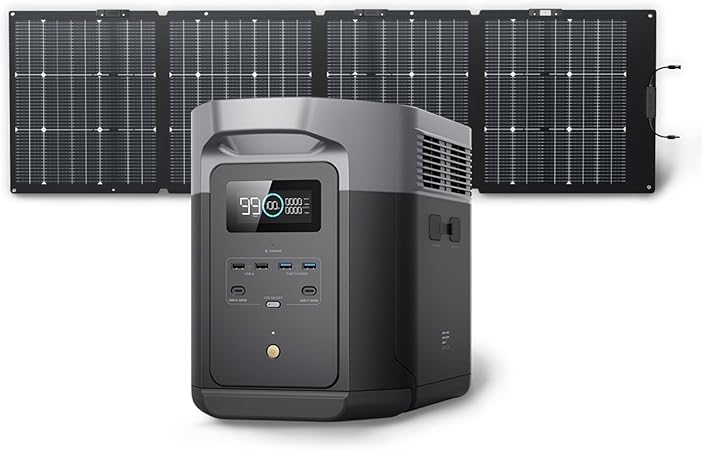 - [0-80% en 43 minutos] Aumenta un 80% de combustible en solo 43 minutos. Con la tecnología mejorada de DELTA 2 Max, combina hasta 1000 W de entrada solar con CA para velocidades de carga líderes en el mundo. En solo 43 minutos obtenga una carga del 80%. O quédate con aire acondicionado para una carga del 80% en una rápida 1.1 hora.